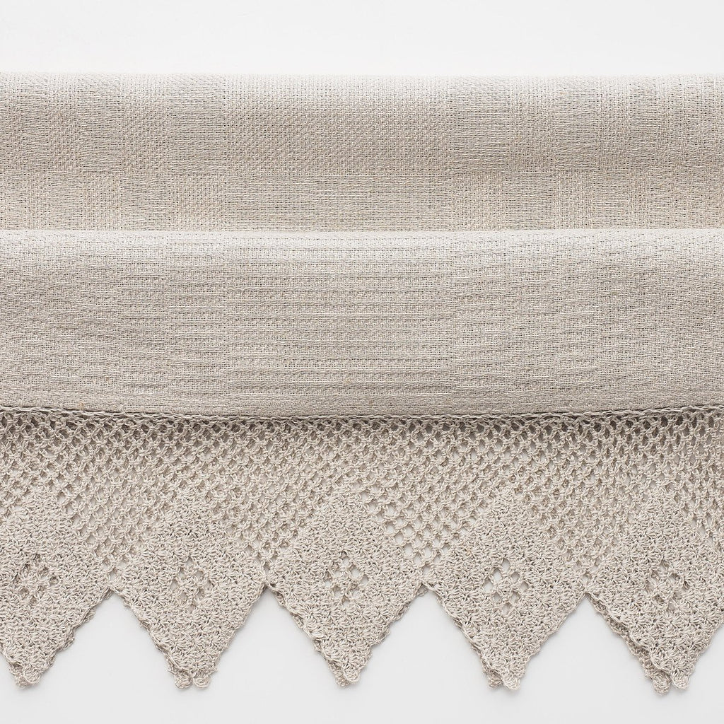 The towel with crocheted lace is individual handwork with its unique character. This towel has been woven following an ethnographic pattern, the advantage of which is the ability to use the product from both sides. The ends of the towel are completed by hand-crocheted lace (15cm) created by skilled artisans. It is a jewel from the past.